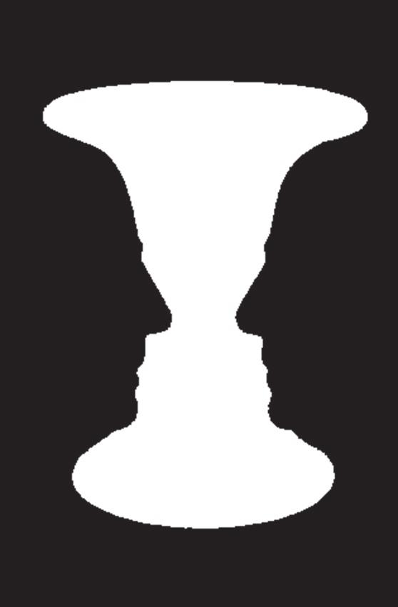 Rubin descubrió que el campo perceptivo se presenta por lo pronto organizado en dos grandes partes o dimensiones. Una de ellas ocupa el primer plano y atrae de inmediato la atención, posee contornos bien nítidos y tiene una forma definida, un cierto carácter objetual o «cósico»: es la «figura». La otra es el «fondo» sobre el que la figura se recorta; contrariamente a la figura, el fondo aparece desprovisto de forma y como por detrás de ella, como envolviéndola.