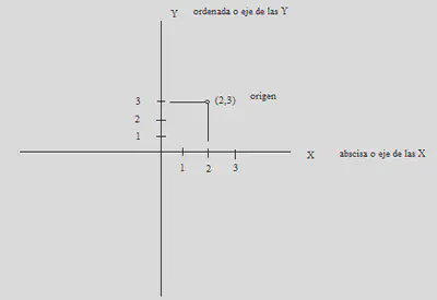 - Eje vertical (ordenada o eje Y), Eje horizontal (abscisa o eje X), Origen (punto donde se juntan ambos ejes).