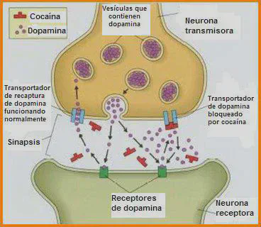 Actuando también presinápticamente sobre el transportador vesicular de la dopamina, localizado en los terminales nerviosos mesolímbicos y nigroestriales, el cual se encarga de almacenar la dopamina del citoplasma previamente síntetizada y/o de la dopamina recaptada desde el espacio sináptico. Se ha sugerido que la cocaína provoca un descenso en la dopamina recaptada por el transportador.