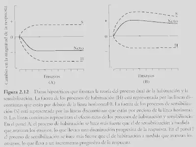 Describa los dos procesos de la teoría del proceso dual de la habituación y la sensibilización y las diferencias entre estos procesos.