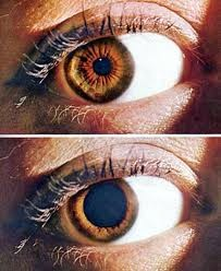 Aumento del diámetro o dilatación de la pupila, al contrario que la miosis.